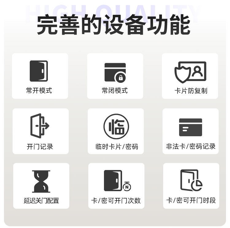 张家界这款智能门锁提供室内门锁和防盗门锁两种选择,其中室内门锁尺寸为 2806521mm,适配 5050 锁体;防盗门锁尺寸为 3657021mm,适配 6068 锁体,可满足不同场景的安装需求。它采用铝合金一体成型搭配钢化玻璃面板打造,兼具坚固耐用的品质与简洁美观的视觉效果。门锁支持蓝牙无线通讯,解锁方式丰富多样,密码、卡片、蓝牙、钥匙四种方式随心选择,满足不同使用习惯与应急需求。其工作温度范围为 - 20~70℃,能适应多数地区的气候条件,采用碱性电池供电,安装更换便捷,是兼具安全性与实用性的门锁选择。